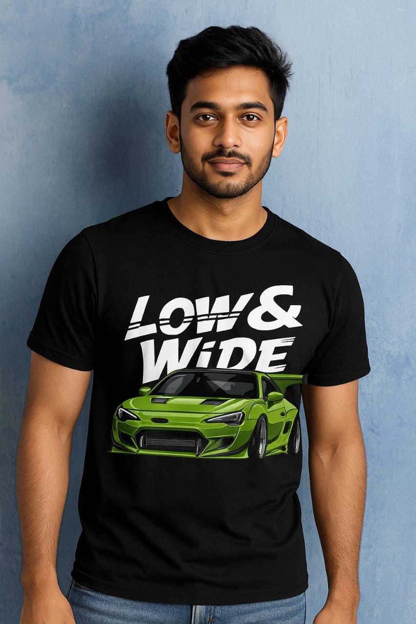 "LOW & WIDE Sports Car Graphic T-Shirt – Premium Cotton Streetwear"